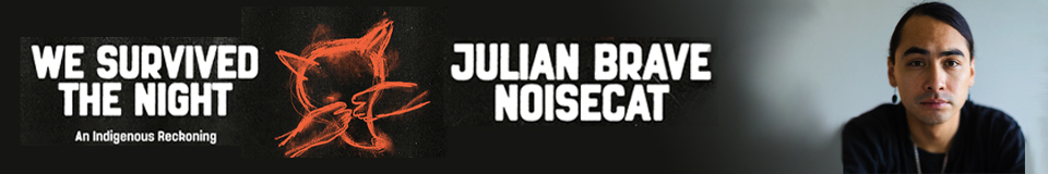 JULIAN BRAVE NOISECAT is a writer, Oscar-nominated filmmaker, champion powwow dancer, and student of Salish art and history. His writing has appeared in dozens of publications, including The New York Times, The Washington Post, and The New Yorker. NoiseCat has been recognized with numerous awards including the 2022 American Mosaic Journalism Prize and many National Native Media Awards. He was a finalist for the Livingston Award and multiple Canadian National Magazine Awards, and was named to the TIME100 Next list in 2021. His first documentary, Sugarcane, was nominated for an Academy Award for Best Documentary. Directed alongside Emily Kassie, Sugarcane premiered at the 2024 Sundance Film Festival, where NoiseCat and Kassie won the Directing Award in U.S. Documentary. NoiseCat is a proud member of the Canim Lake Band Tsq̓éscen̓ and descendant of the Líl̓wat Nation of Mount Currie. We Survived the Night is his first book.